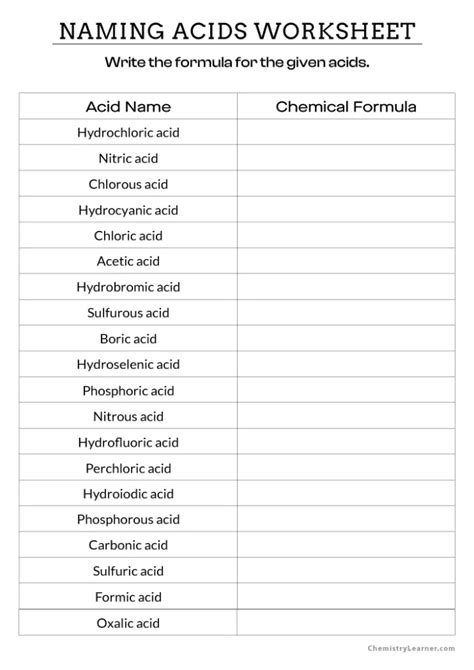 Naming Acids Worksheet. Acid formula anion in acid acid name xxxxxxxxxxx formula. Web practice worksheet naming acids.