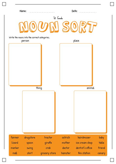 Noun Sort Worksheet First Grade. First grade)google slides link included!real color photos10 noun pictures and 10 verb. Web if you are teaching nouns in 1st grade, after teaching students what a noun is, the next mini lesson lesson we teach is usually about sorting the different kinds of.