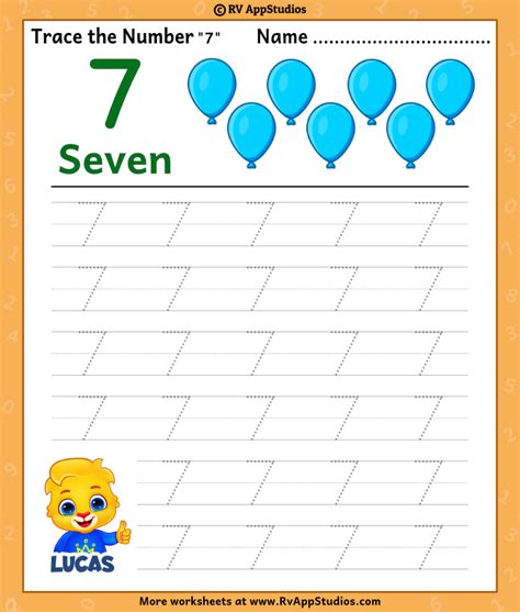 Number 7 worksheets for preschoolers usually offer tasks in the form of tracing numbers. Kids have to trace the number several times on the worksheet with. Trace number '7' worksheet for free for kids.
