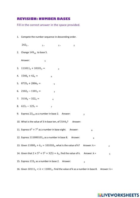 This math worksheet was created. You can do the exercises online or download the worksheet as pdf. Web number bases interactive worksheet for 10.
