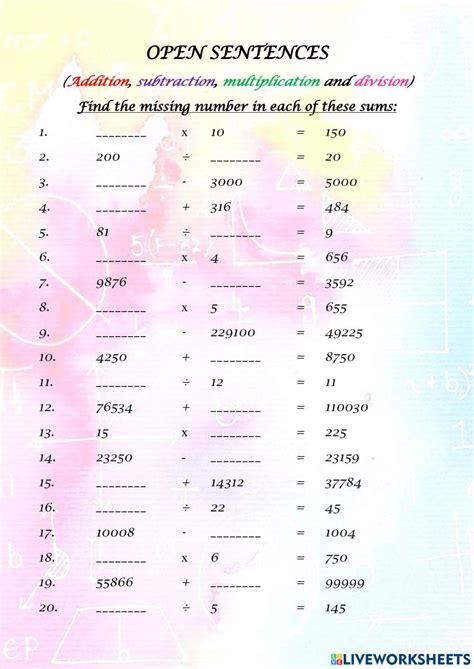 Open Sentence Math Worksheet. Number sentence are most commonly found in the form of an equation or. Web watch this lesson on what makes an open sentence in math and learn how to solve and answer the problem.