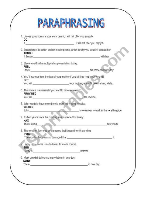 Web paraphrasing worksheets and online activities. Web when we are paraphrasing in our work it is important to keep the original meaning and facts intact. This skill is the first.