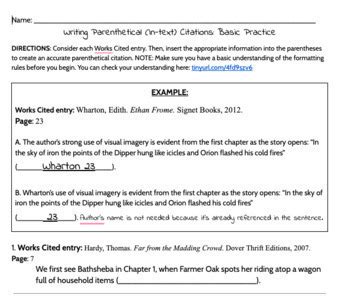 Worksheets Are Exercises For Using Mla Parenthetical C.