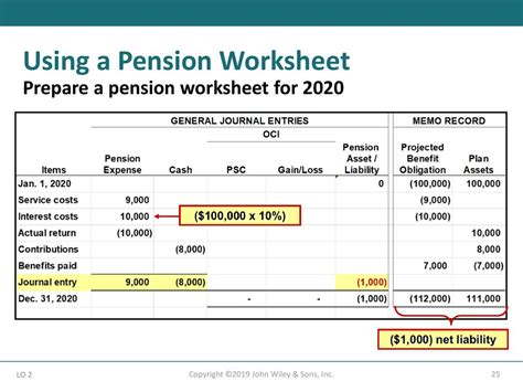 Pension Worksheet Pension Asset/ Liability Memo Record Projected Benefit.