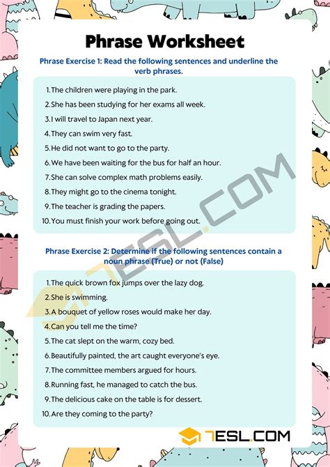 Web Verb Phrases Worksheets And Online Activities.
