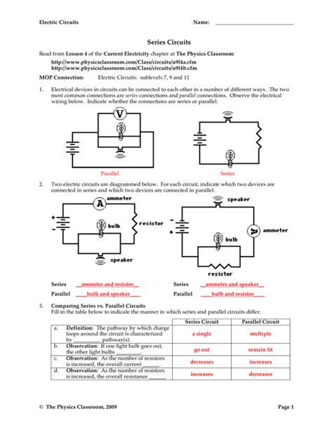 Web series and parallel circuit 2. This activity was created for regular and honors high school physics and physical science students. Worksheets are physics work lesson 19 electric circuits, grade 9 science unit 5, abraham darby.
