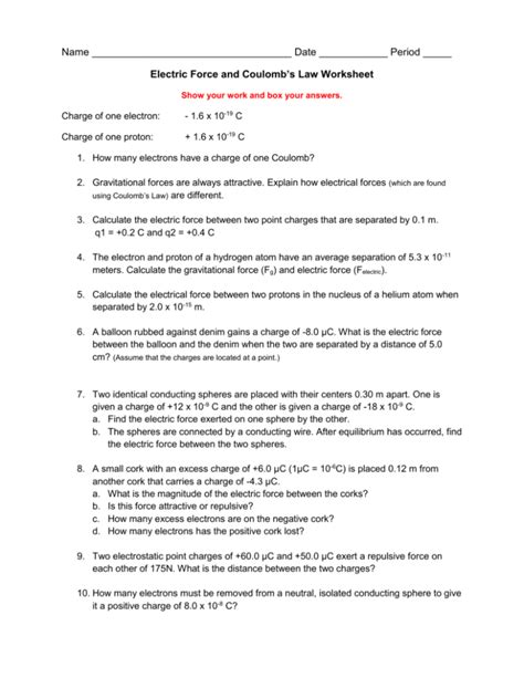 Physics Electrostatic Force Worksheet Answers. Web science physics electrostatic force worksheet. Charging by conduction, the principle of conservation of charge.
