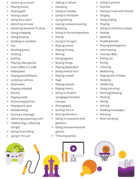Web worksheets are leisure education handouts, work leisure education, learning about leisure, leisure activities, name date leisure activities, values activity work, the. Web list some pleasurable activities e.g. Web the activity list for kids is a list of fun, engaging, and healthy activities that kids can use during behavioral activation.